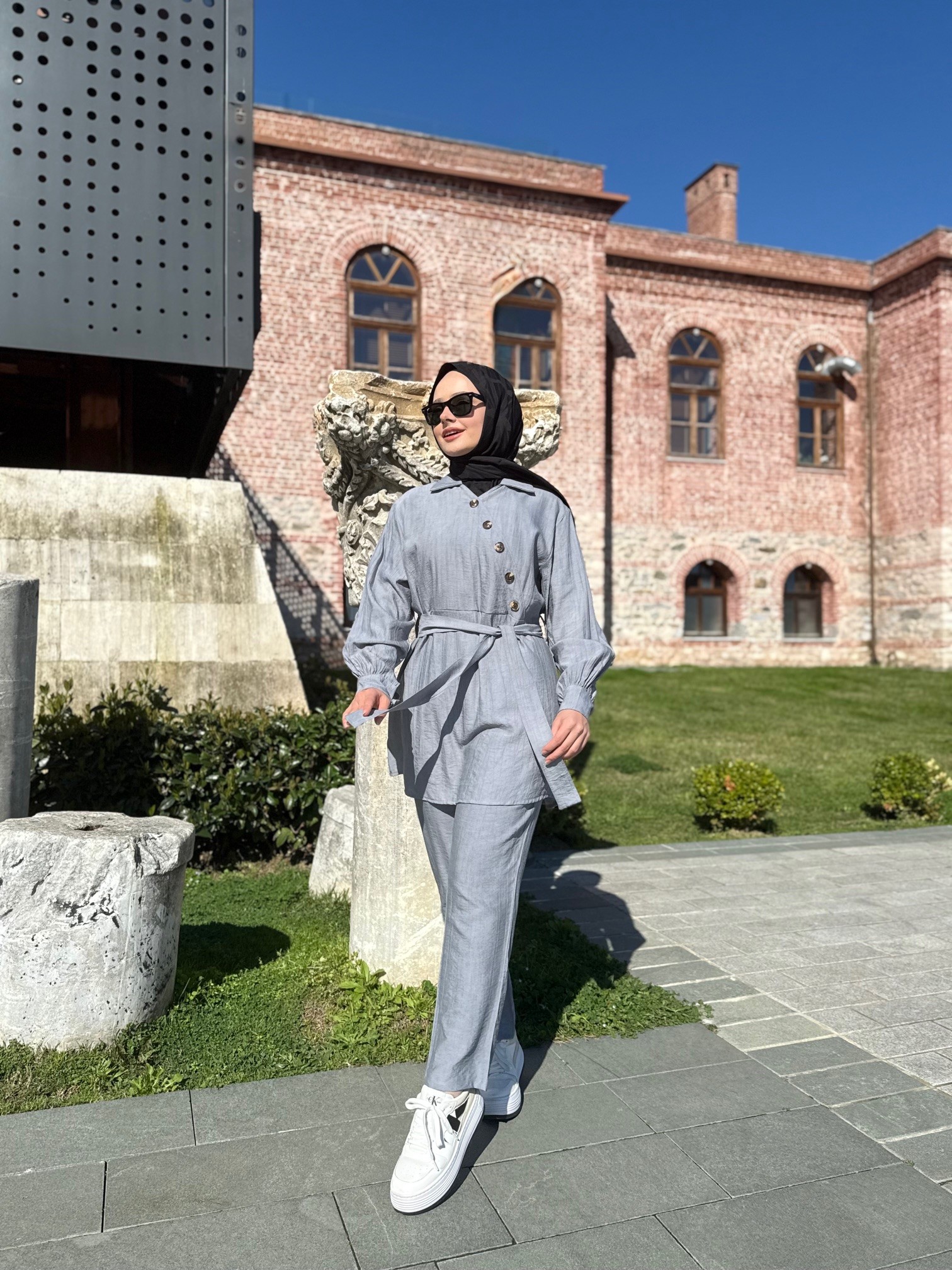 6513 Megan Belden Bağlamalı Pantolon Takım