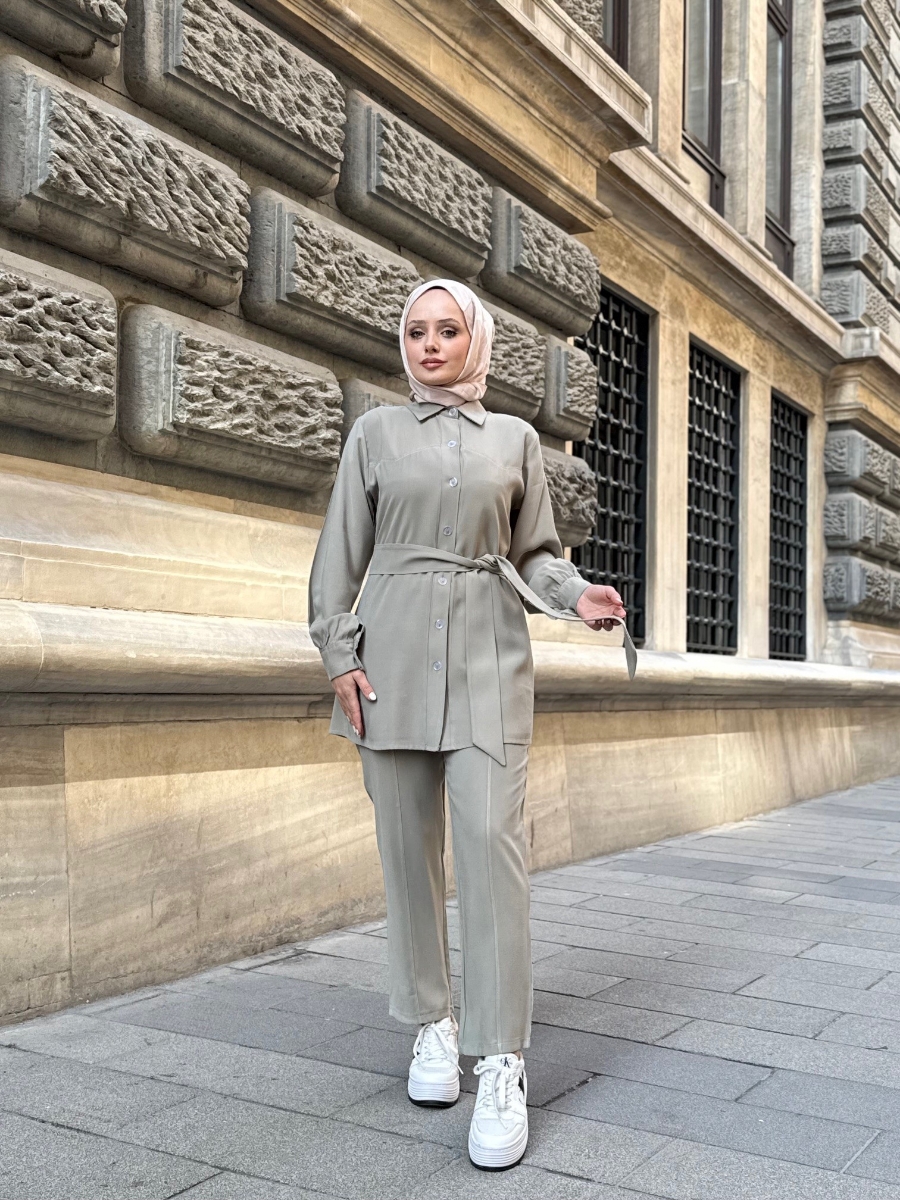 6510 Diagonal Belden Bağlamalı Pantolon Takım
