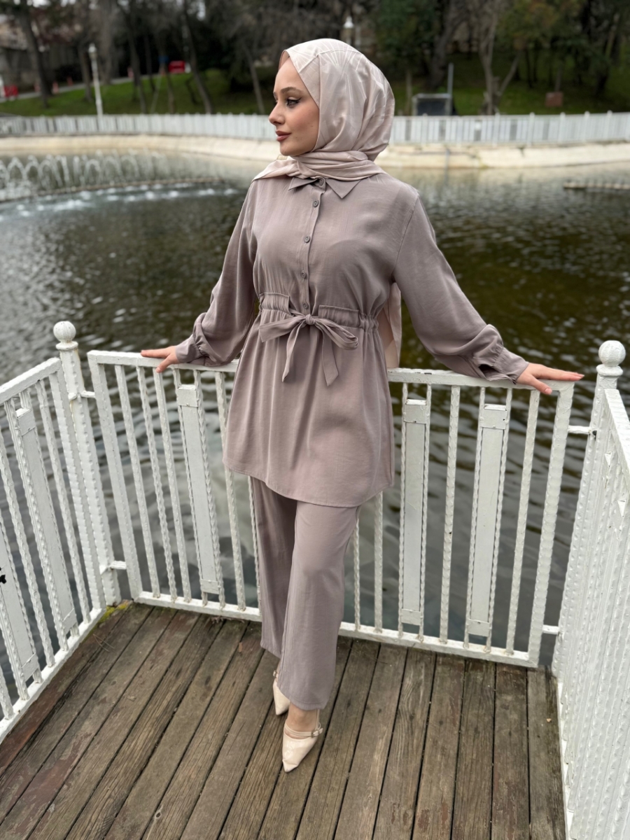 6516 Modal Belden Bağlamalı Pantolon Takım