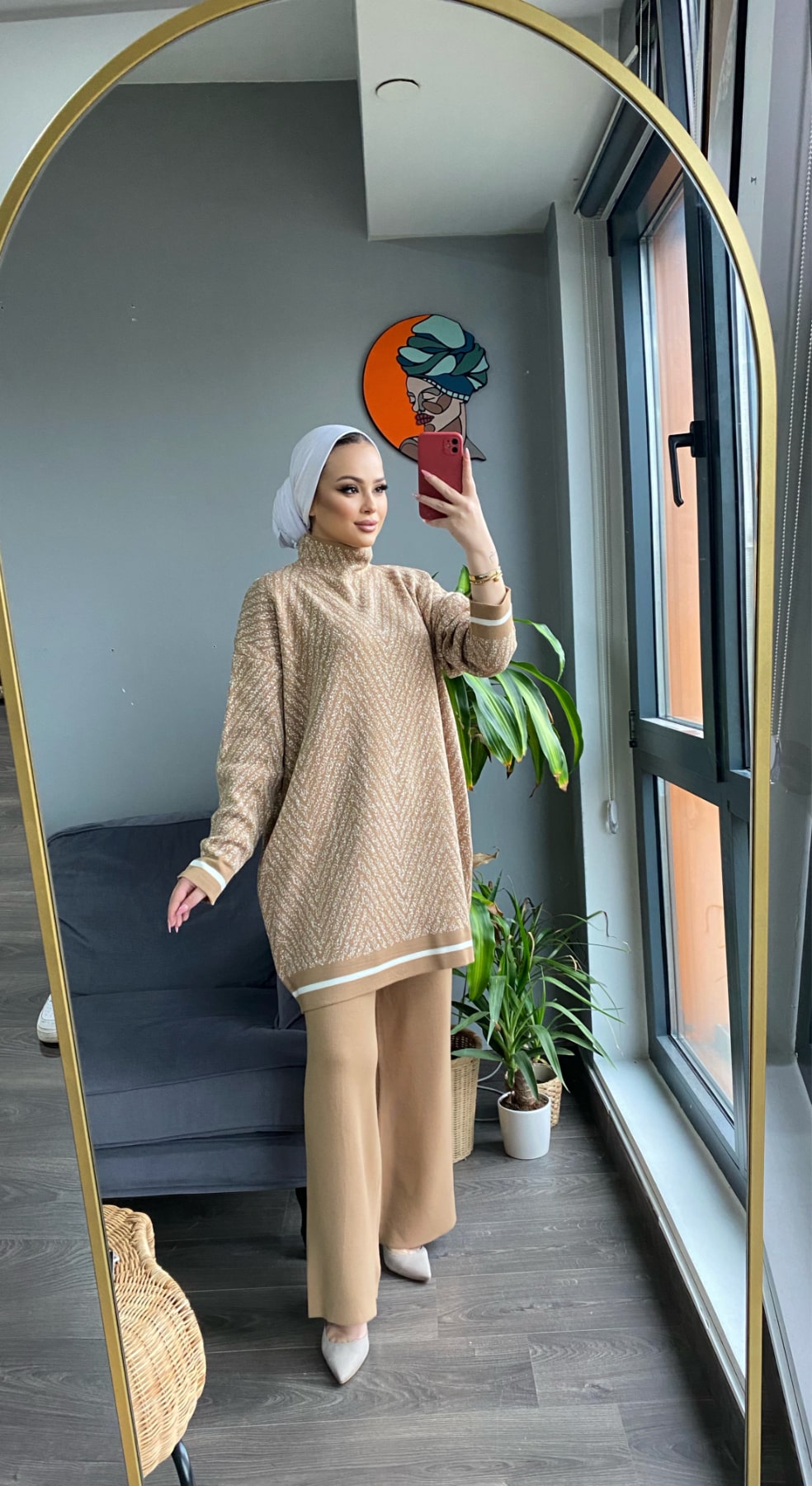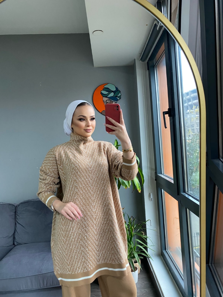 Resim  Etnik desen balon kol triko ikili takım Camel Resim  Etnik desen balon kol triko ikili takım Camel 22%