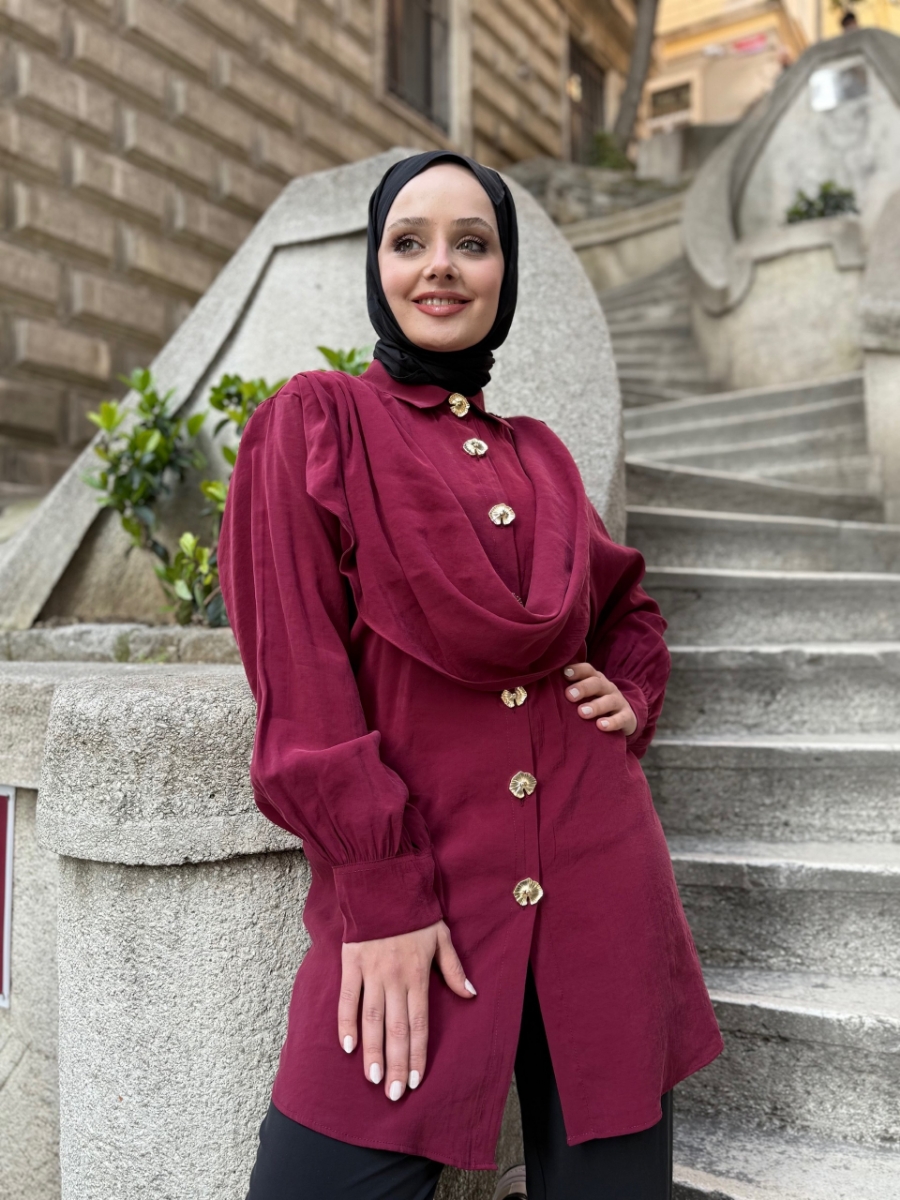6528 Modal Şal Detaylı Gömlek