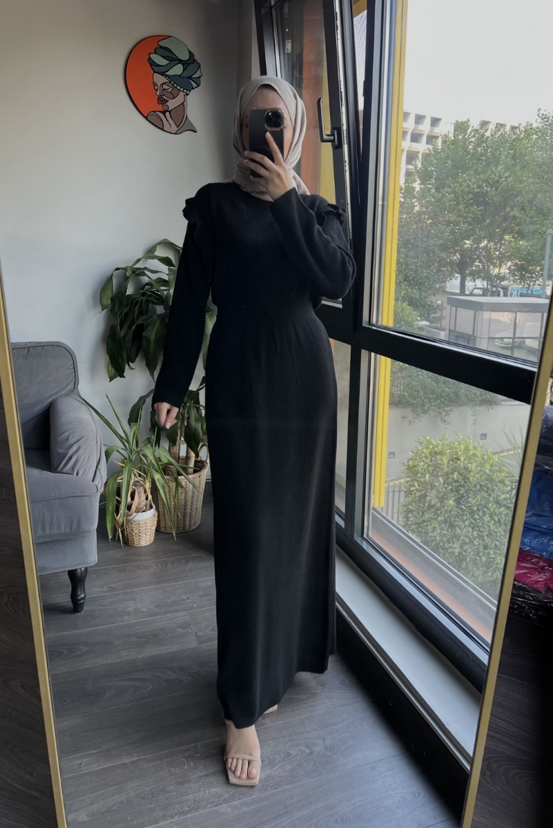 Rufle elbise Siyah